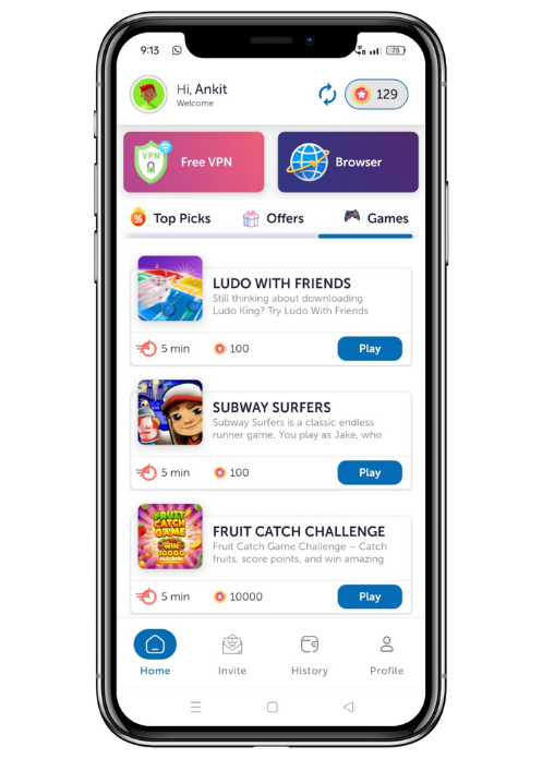 🎮 Play daily games, complete challenges & earn coins. Invite friends & grab 750 coins on their first redeem! 💰
